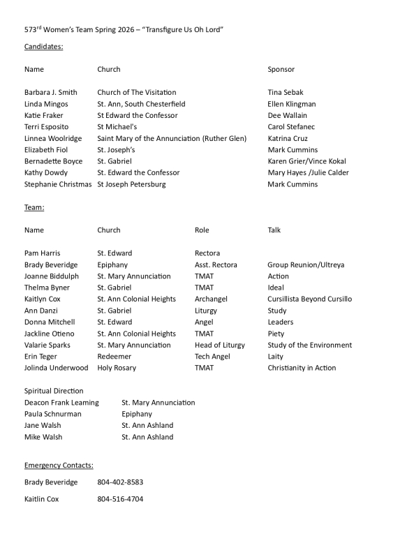 Check out our Group Reunion tab here on the website: https://www.centralvacursillo.org/group-reunion